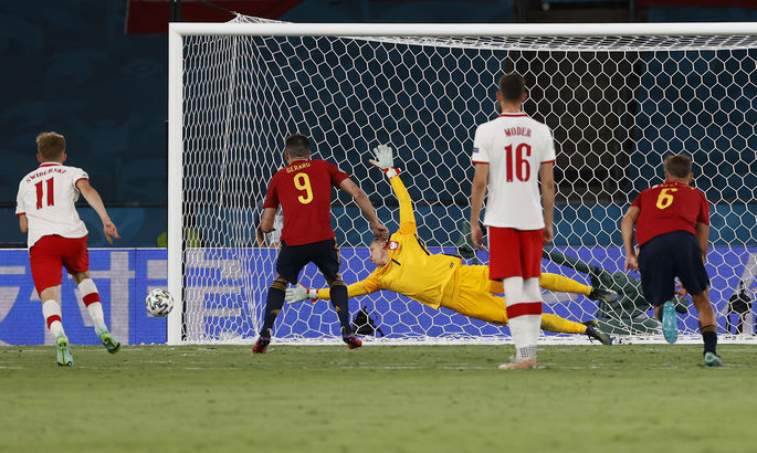 Сборная Польши сыграла вничью с Испанией благодаря Левандовски21 июня, 13:30 Благодаря голу нападающего "Баварии" Роберта Левандовски сборная Польши в субботу вечером сыграла вничью с Испанией 1:1 (0:1), сохранив шансы на выход в плей-офф чемпионата Европы по футболу. После двух матчей сборная Польши с одним очком занимает последнее место в группе E. Впереди